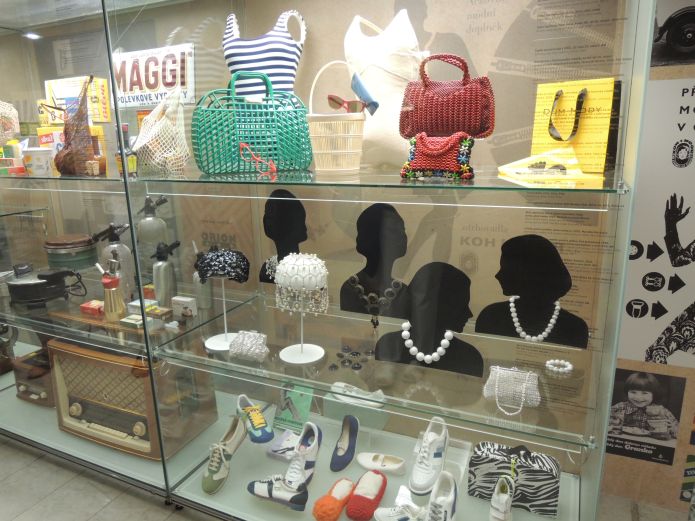 Součástí výstavy Retro nejsou jen ukázky pomíjivosti a nadčasovosti módy, ale i retro příklady z dalších oblastí lidského života - legendární hračky, kosmetika, elektronika, potraviny, šperky a doplňky. K mé radosti jsem objevila i šicí koutek s názvem Šaty dělají člověka.